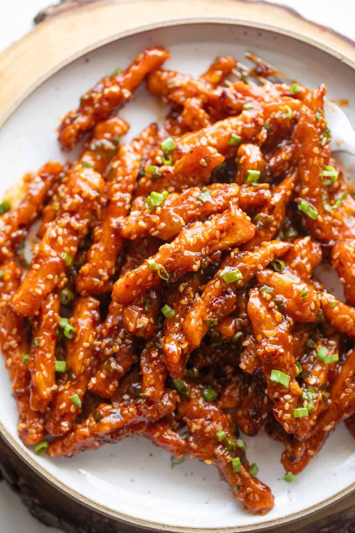 Crispy Honey Chilli Potatoes are a super addictive snack – fried chilli potato fingers are tossed in a sesame honey chilli sauce that’s sweet and spicy and will give you sticky fingers that you’ll be licking clean!